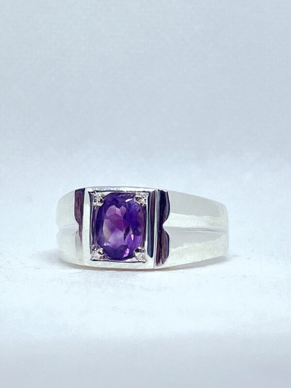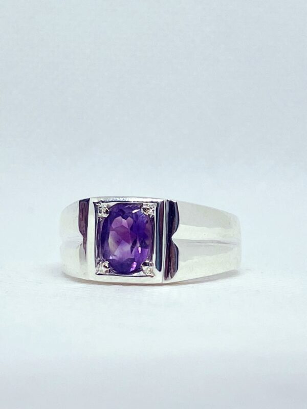 Command attention with this bold silver ring featuring a natural amethyst gemstone, designed especially for men who value both style and substance. With its deep purple hue and solid silver setting, this ring is a symbol of clarity, control, and quiet strength.