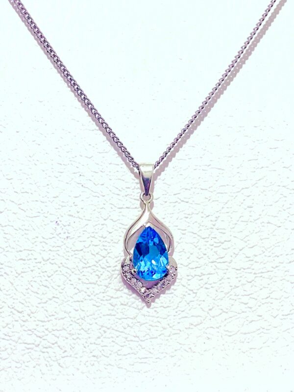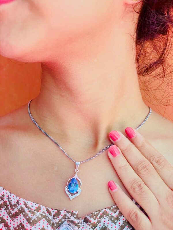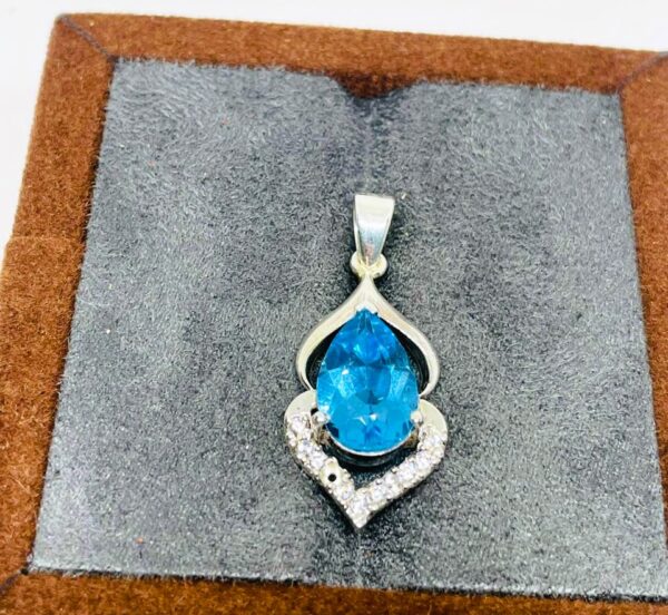 Add a touch of sparkle and serenity to your style with this stunning silver pendant featuring a natural heart-shaped blue topaz gemstone, beautifully accented with shimmering American diamonds. Designed for women who value grace and inner peace, this piece is both eye-catching and meaningful.