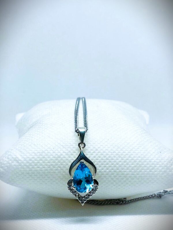 Natural Blue Topaz Gem With Silver Pendant(code-HP100)